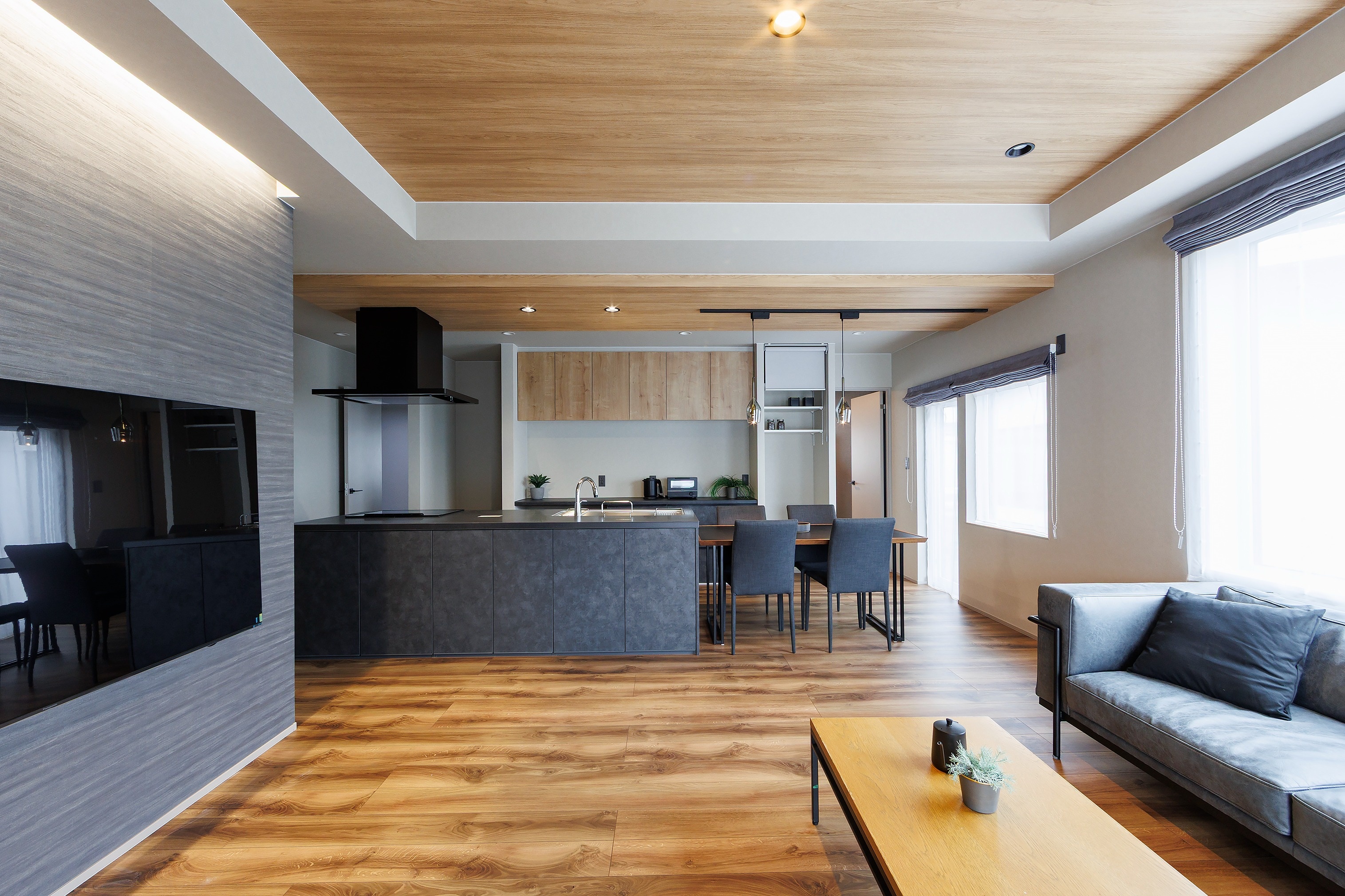 LIXIL リシェルのブラックのキッチンがインテリアのアクセントとして抜群の効果をもたらしています。