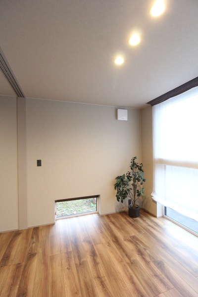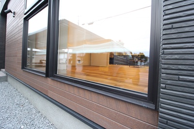 ワンちゃん(小型犬)のために、低い高さの窓や道路面に面した窓は床から設置しています。