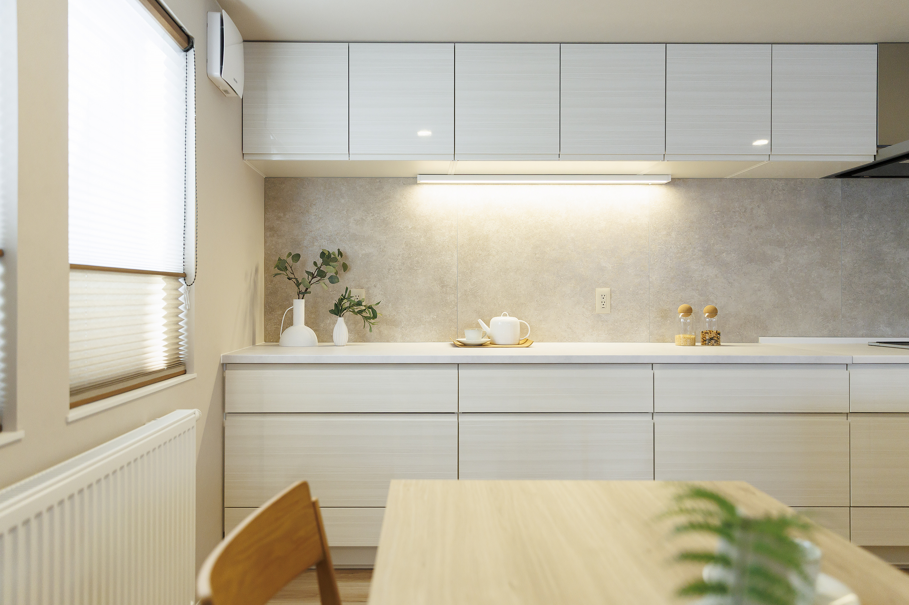 モデルハウスとはまた違う印象で、温かみのある色味の仕上げを全体的に使用しているので