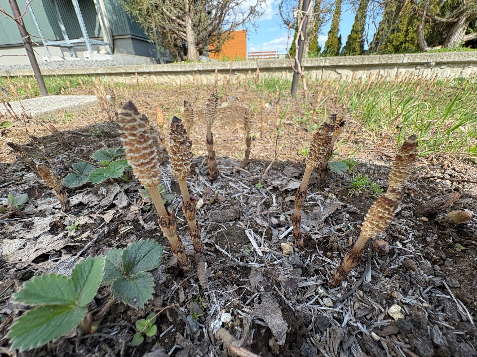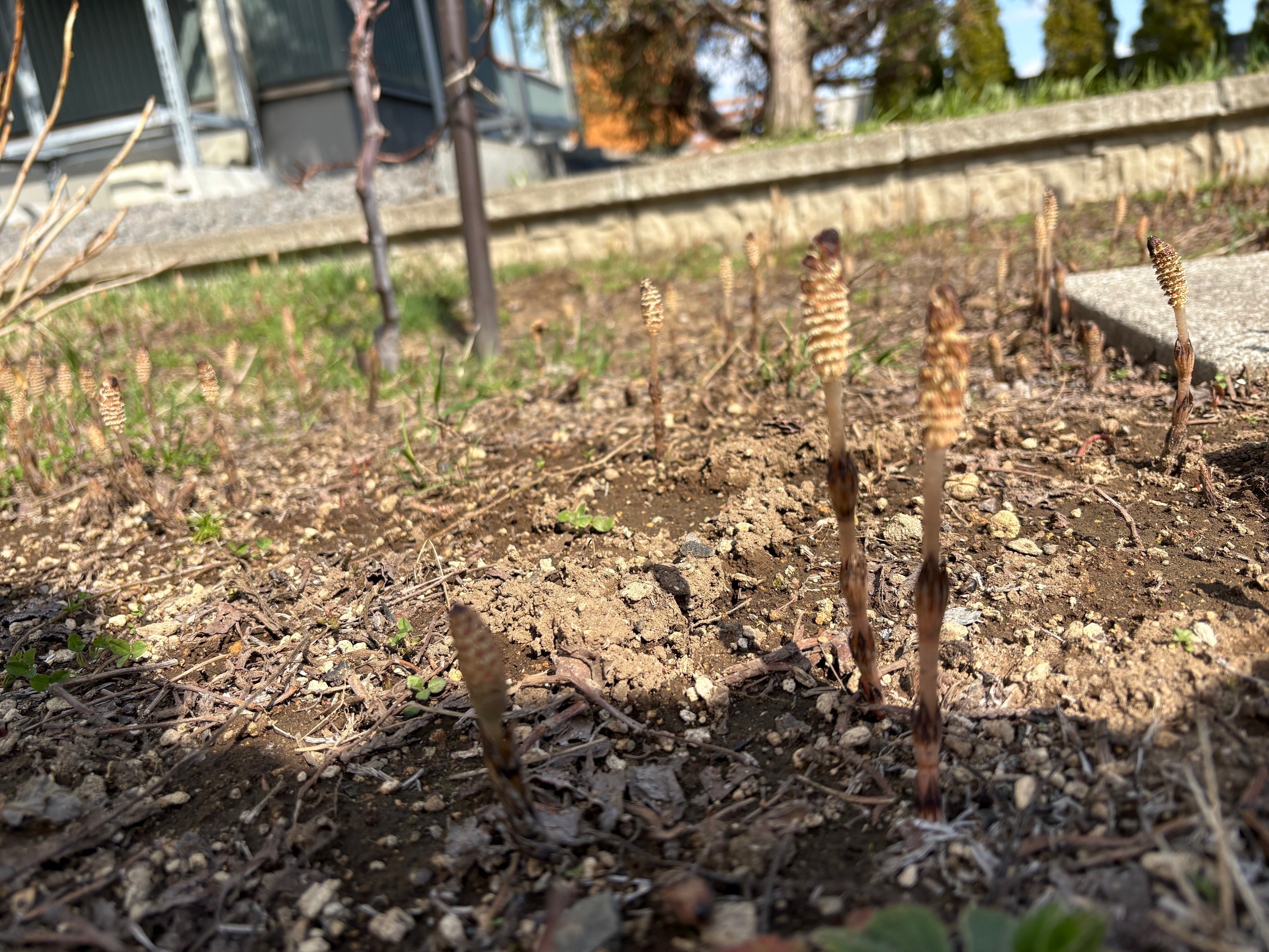 実はこのつくし、つくしの子ではなく、スギナの子でした。夏になると元気に茂げるあのスギナ、春にはつくしとしてかわいらしく出現して胞子を飛ばし、夏には地下茎に栄養を貯めて成長していきます。たくましく生きる植物に負けずに元気に行きましょう!