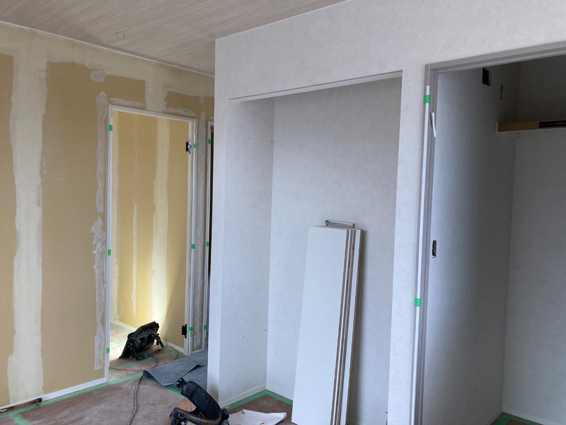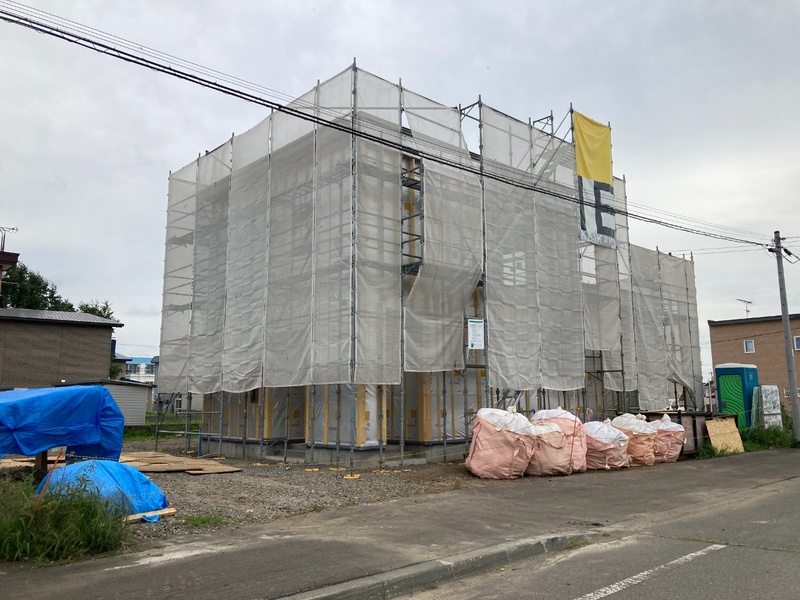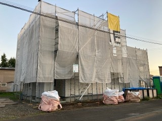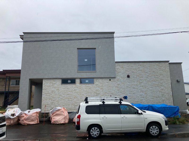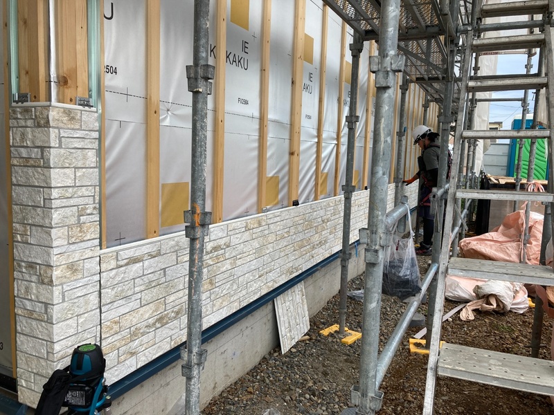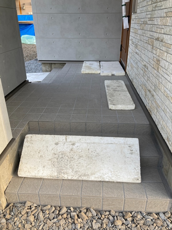 型枠を解体しています。基礎のコンクリートが出来上がりました。