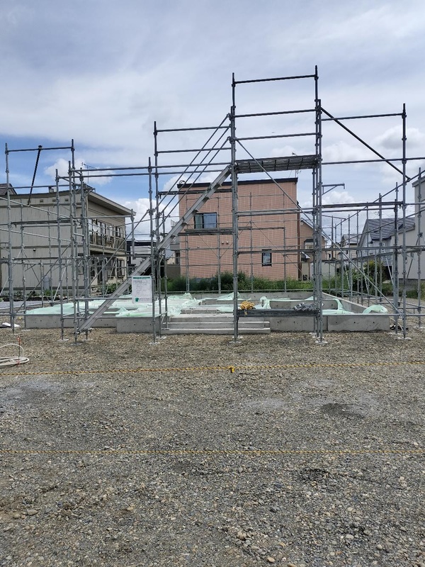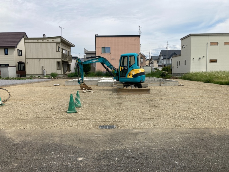 埋め戻し整地を行っています。もう少しで基礎完成です。