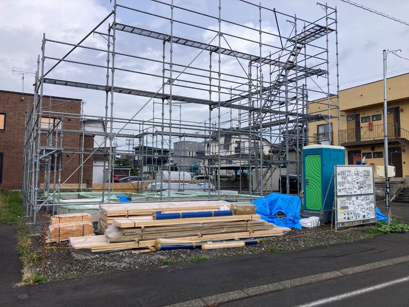 足場が組み上がりいよいよ大工さんの出番になります。