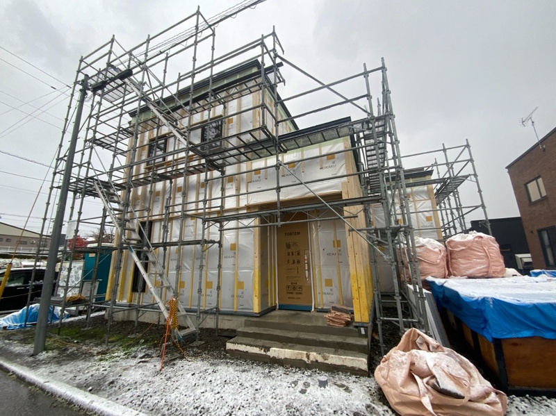外部下地の工事をしています。