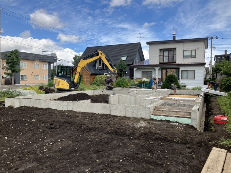 永山K様邸 2025年8月 着工 基礎工事 やり方を出しました。 2025.8.24 地鎮祭 地鎮祭を行いました。 2025.8.24 地盤改良 杭工事を行いました。 2025.8.29 鉄筋工事 鉄筋を組みました。 2025.9.2 型枠工事 型枠を組みました。 2025.9.8 埋め戻し工事 土を埋め戻しました。 2025.9.18 基礎工事 基礎工事が完成しました。 2025.9.26