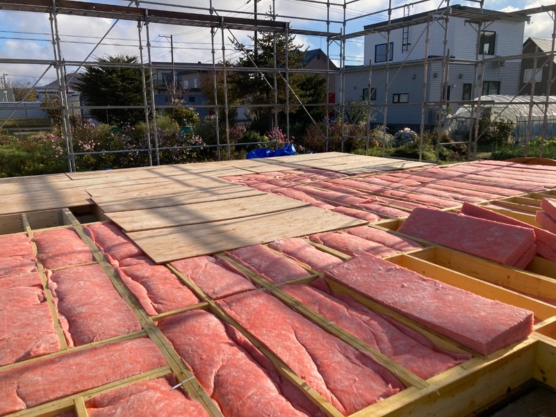 床の断熱材を充填しました。