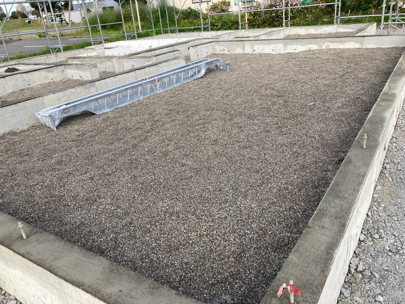 埋戻しを行いました。 基礎工事が完了しました。