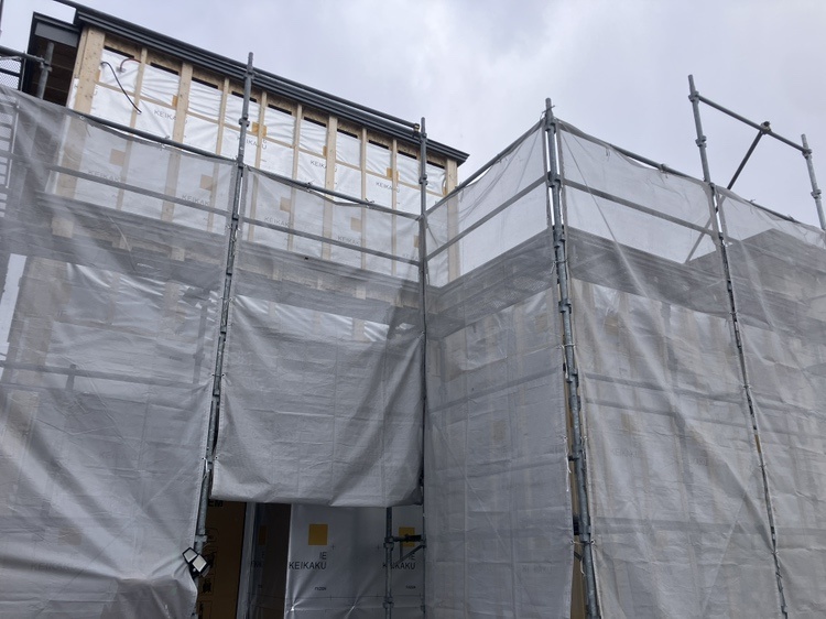 外壁下地を張っています。