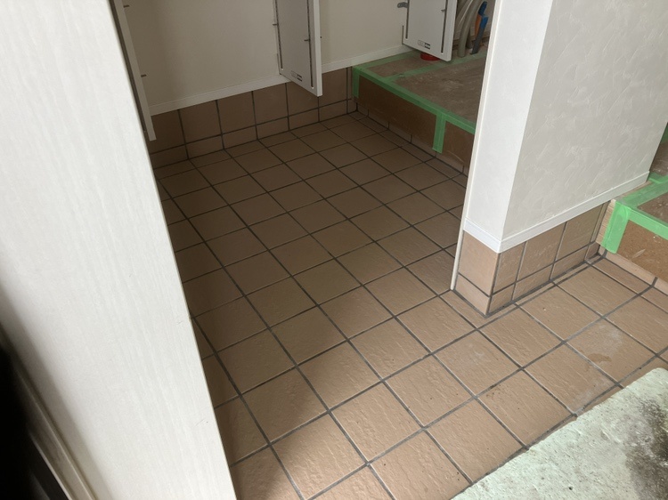 玄関タイルを張りました。