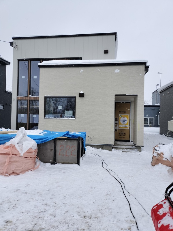 上棟してます。外回り工事中です。