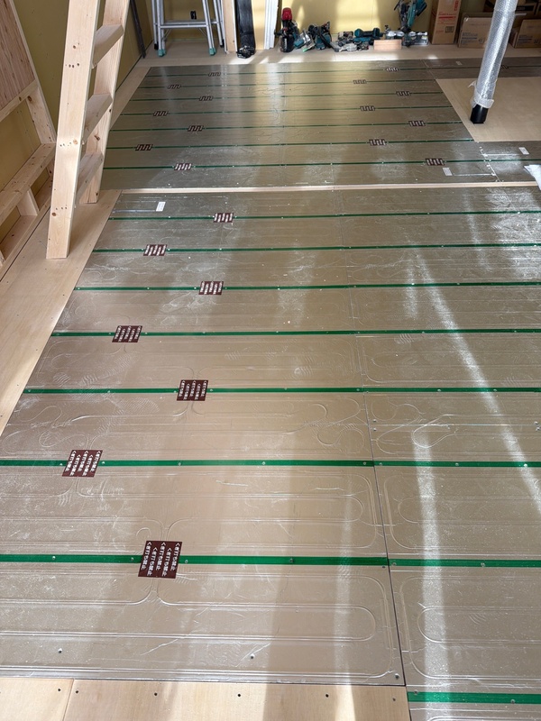 床暖パネルを取り付けしています。