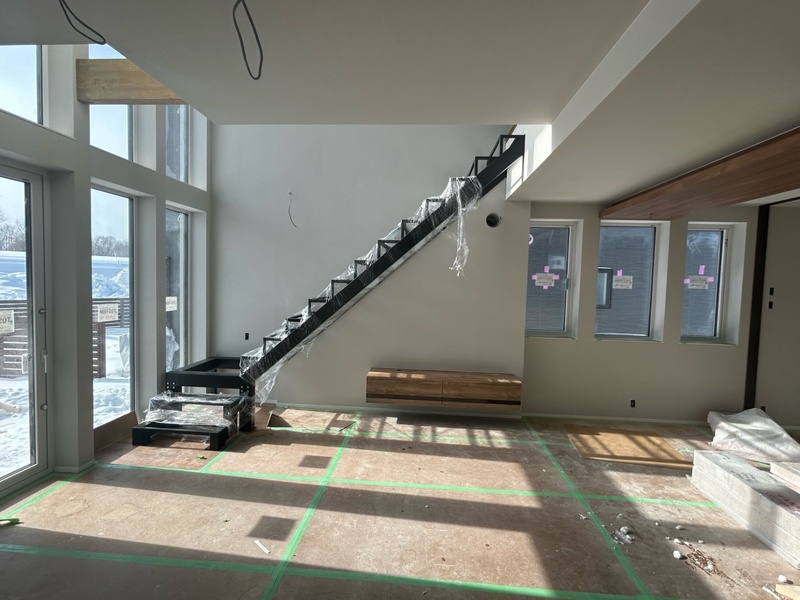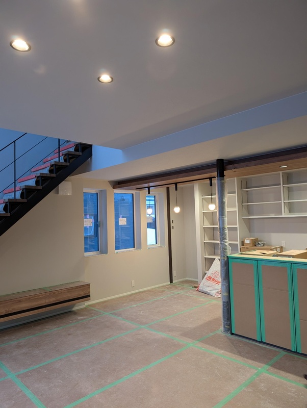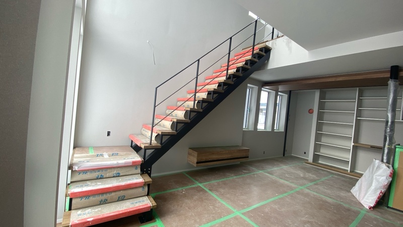 スチール階段を残して大工さんの工事が完了しました。