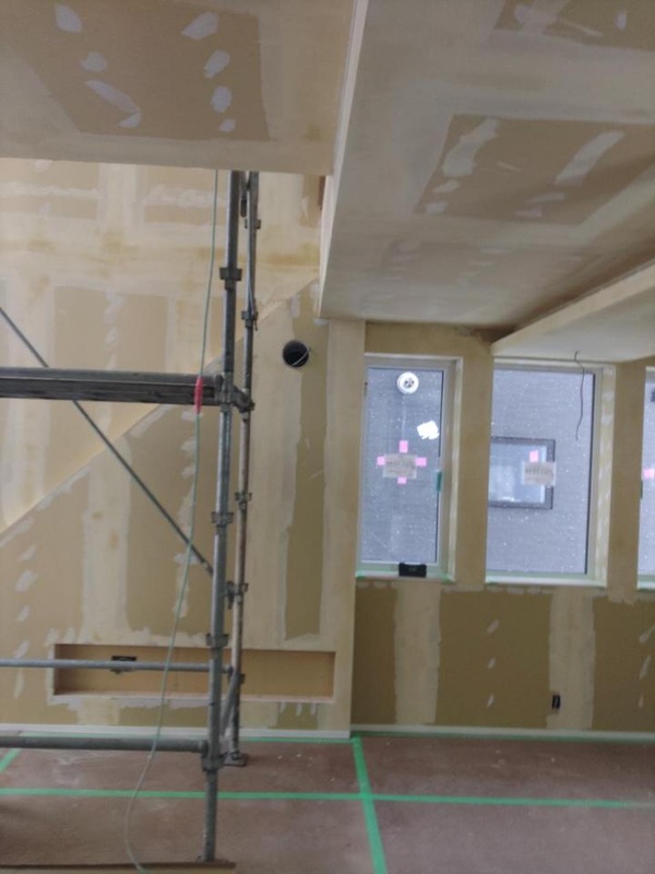 クロス工事が入りました。コーナーテープを張っています。