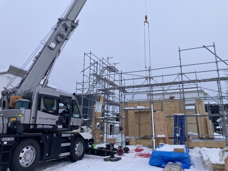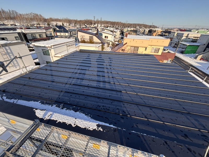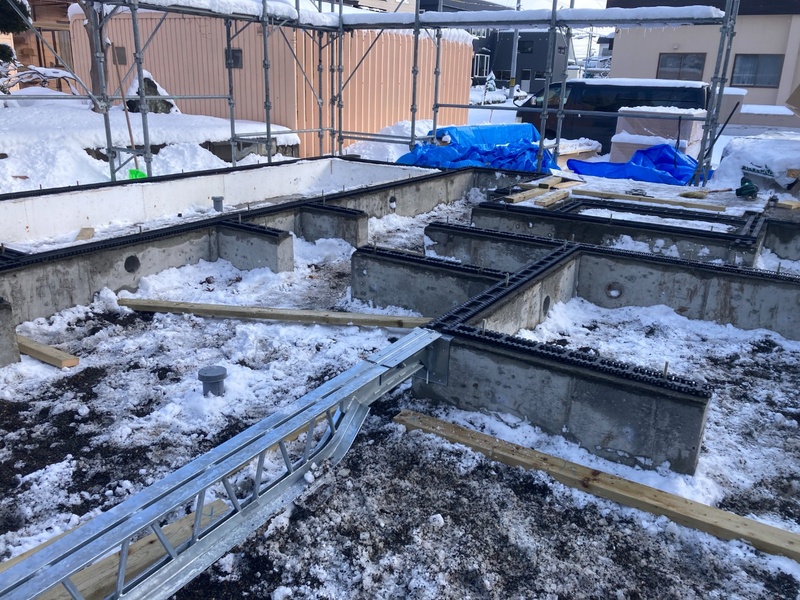 錦町H様邸 着工 基礎工事 やり方を確認しました。 2025.8.23 地鎮祭 地鎮祭をやりました。 2025.8.23 基礎工事 配筋を組みました。 2025.10.3 基礎工事 脱枠をしました。 2025.10.9 仮設工事 足場をが組み立てました。 2025.11.7 木工事 土台敷きをしています。 2025.12.10 木工事 パネル建て込みを行いました。 2025.12.15 板金工事 板金が完了しました。 2025.12.23 木工事 断熱材を充填しています。 2025.12.23