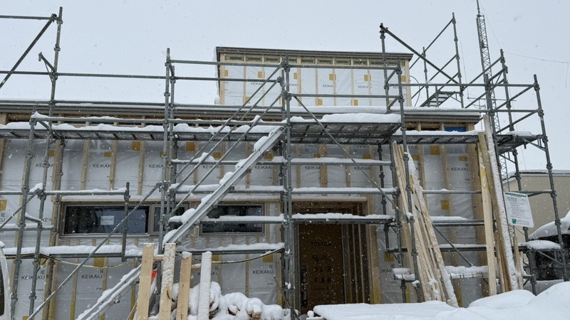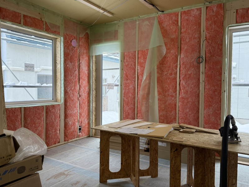 外断熱の施工中です。