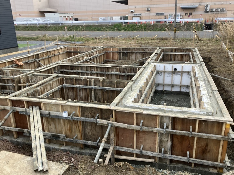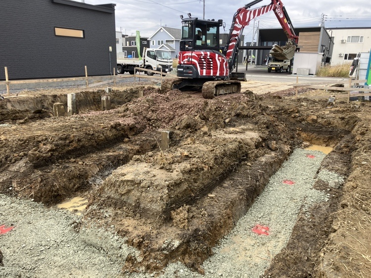 名寄K様邸 2025年10月 着工 やり方 やり方を出しました。 2025.10.23 地鎮祭 地鎮祭を行いました。 2025.10.23 地盤改良工事 杭工事をしています。 2025.10.29 基礎工事 根掘りを行いました。 2025.11.4 基礎工事 鉄筋を組みました。 2025.11.5 基礎工事 コンクリートを打設しました。 2025.11.11