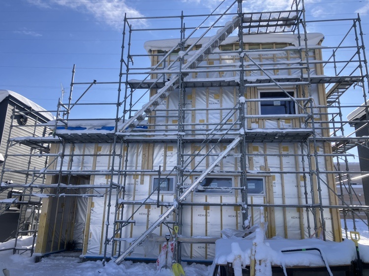 外壁下地の工事中です。