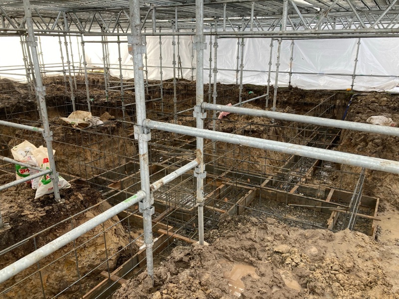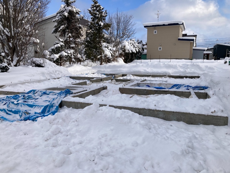 鷹栖 S様邸 着工 仮設工事 やり方を出しました。 2025.11.1 地盤改良工事 PC杭工事を行いました。 2025.11.10 基礎工事 養生テントを組み立てました。 2025.11.25 基礎工事 鉄筋が組み上りました。 2025.11.25 基礎工事 型枠の取付を行いました。 2025.12.2 基礎工事 基礎工事が完了しました。 2025.12.12
