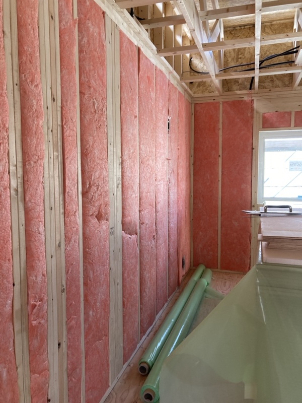 壁の断熱材を充填しています。