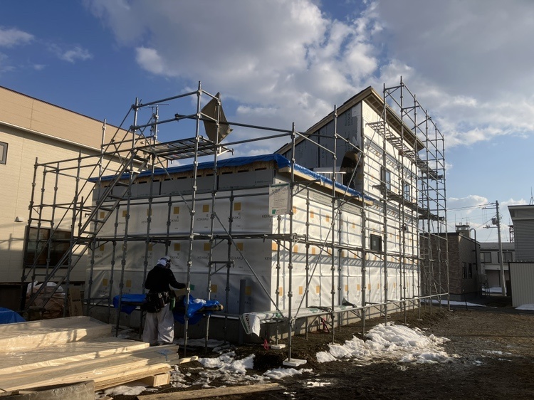 外壁を張っています。