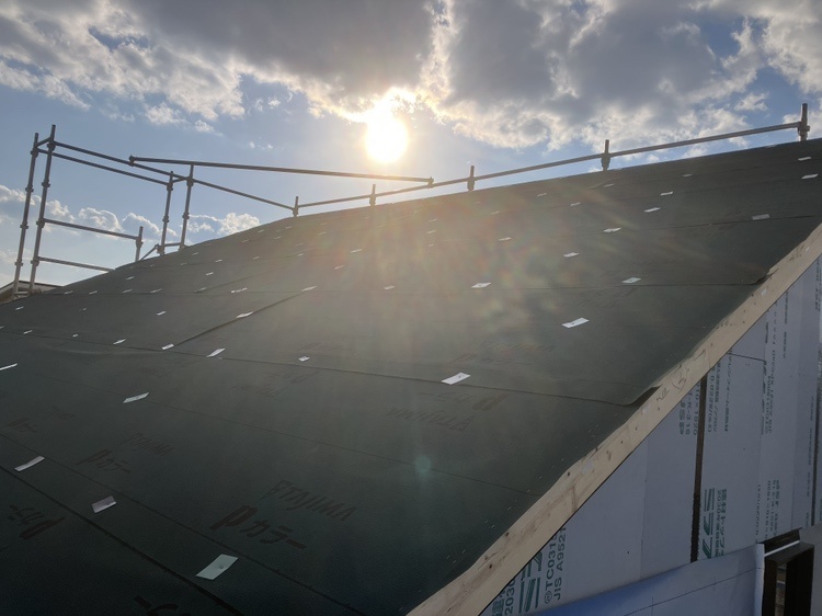 屋根のルーフィングを張っています。