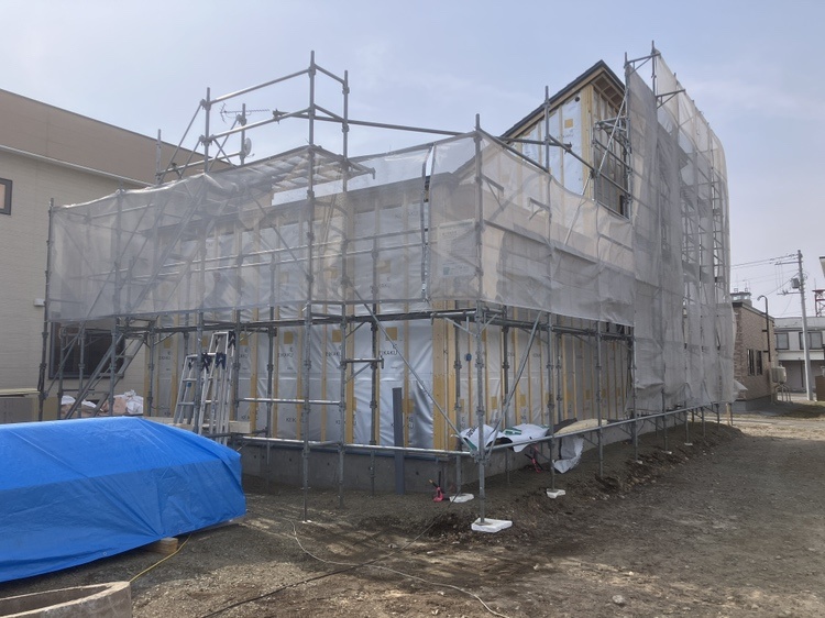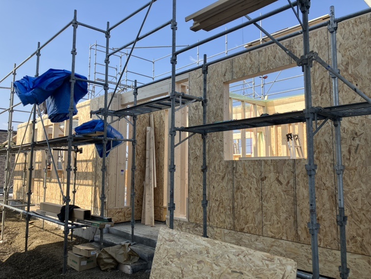 外壁下地を張っています。
