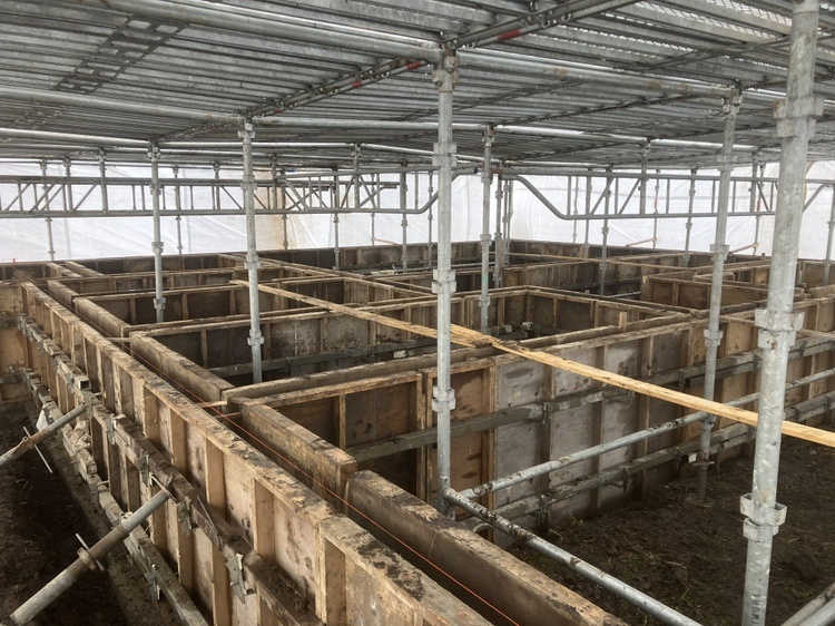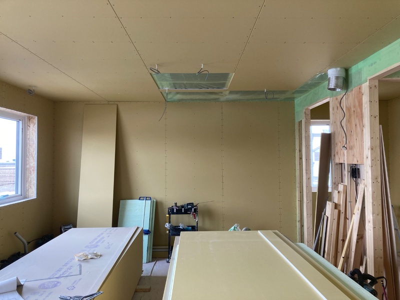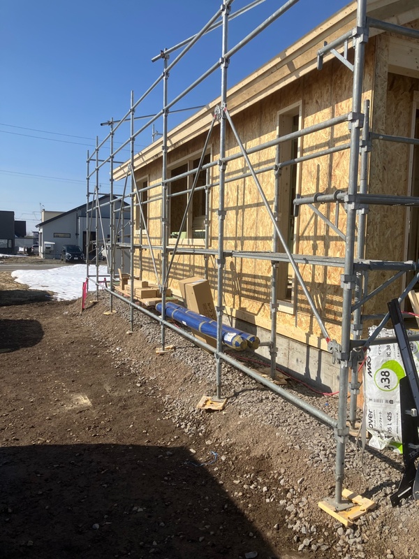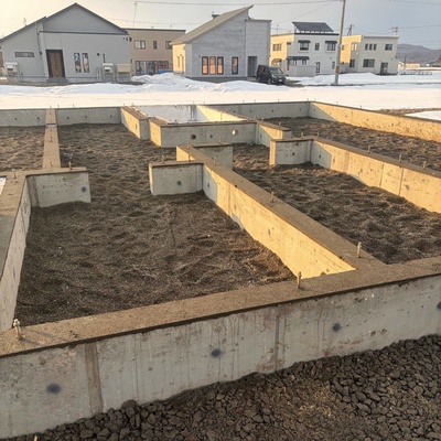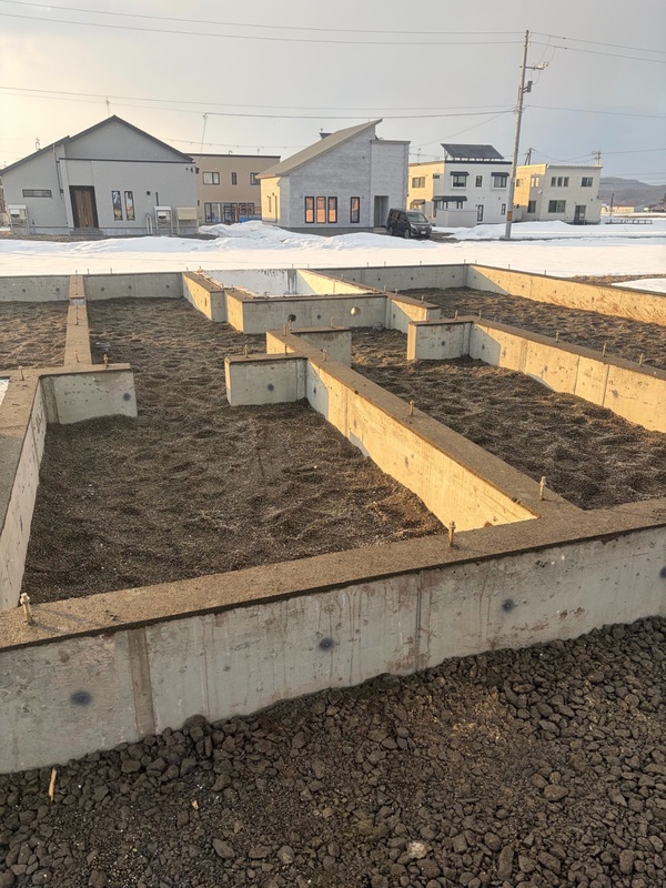 東川Y様邸 2026年2月 着工 やり方 やり方を出しました。 2026.2.8 地鎮祭 地鎮祭を行いました。 2026.2.8 基礎工事 配筋が組み上りました。 2026.2.24 基礎工事 型枠を組みました。 2026.3.1 基礎工事 脱枠しました。 2026.3.12 基礎が完成しました! 2026.3.18 本体工事 パネル建て込みを行いました! 2026.3.24 本体工事 グラスウールを充填しました。 2026.3.27 本体工事 石膏ボードを張っています。 2026.3.31