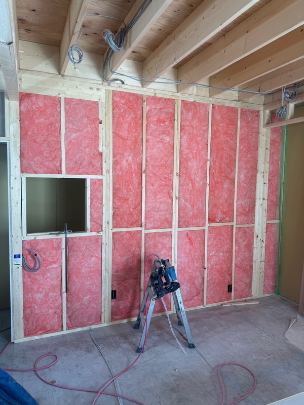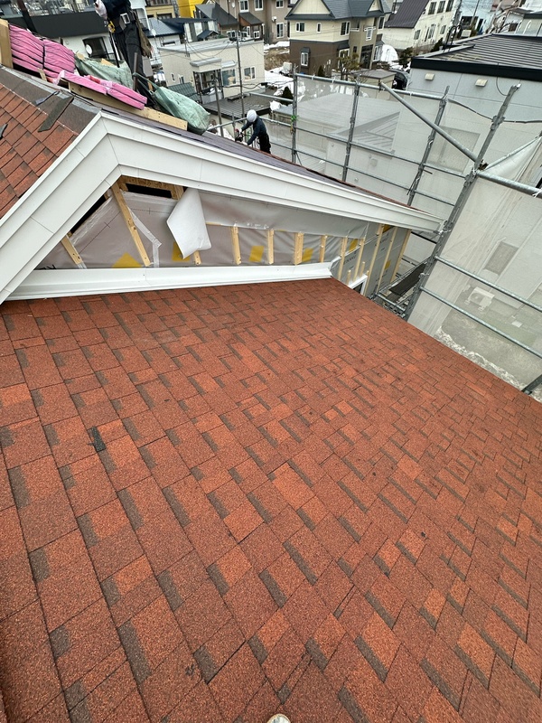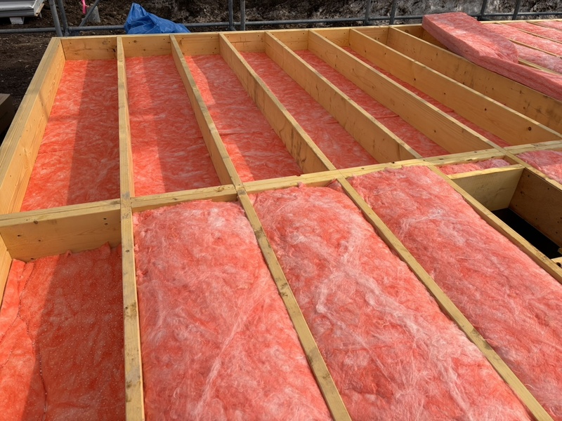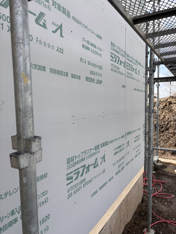 春光台N様邸 2026年1月 着工 地鎮祭 地鎮祭を行いました。 2026.1.29 やり方 やり方を確認しました。 2026.1.29 基礎工事 基礎の配筋が組み上りました。 2026.2.17 基礎工事 型枠を外しました。 2026.2.27 木工事 床敷きをしています。 2026.3.16 木工事 外壁の断熱材を張っています。 2026.3.24 板金工事 屋根工事が完了しました。 2026.4.18 木工事 壁の断熱材を充填しました。 2026.4.18