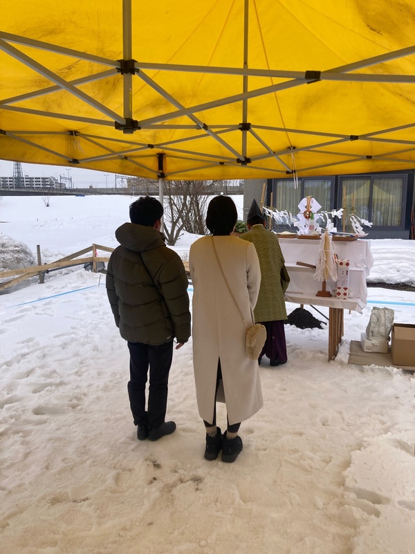 神楽A様邸 2026年3月 着工 地鎮祭 地鎮祭を行いました。 これから着工です。 2026.3.1 基礎工事 基礎工事が始まりました。 2026.3.9 基礎工事 鉄筋が組み終わりました。 2026.3.14