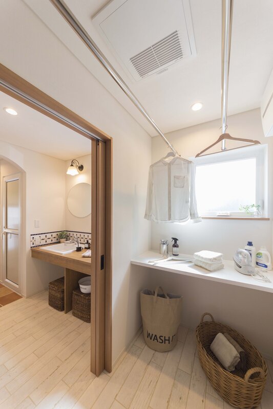 キッチンからランドリーへの動線にはママのこだわりを反映し、家事のしやすさにも配慮。