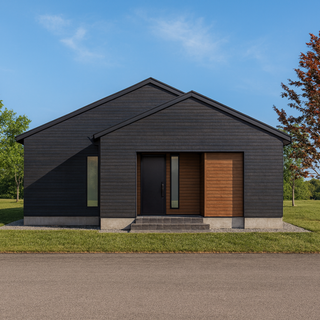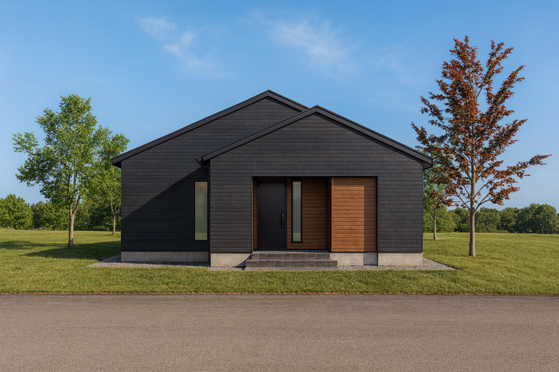 ふたつの三角屋根が並ぶ個性的な外観は、角度によって表情が変わり、スタイリッシュで印象的。