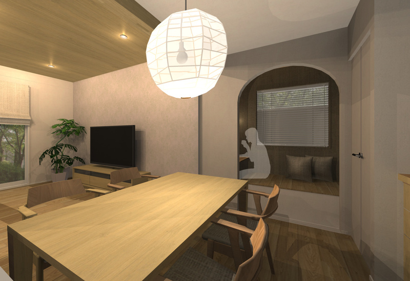 ダイニング横には、絵本の読み聞かせにぴったりの“窓付きヌック”を設計。